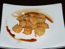 Per 6 persone: 600 gr. di grana a dadini, 130 gr. di farina, 2 cucchiai di olio extravergine, 1 tuorlo d’uovo, 50 gr. di latte, 50 gr. di birra chiara, aceto balsamico, olio per friggere, sale q.b.