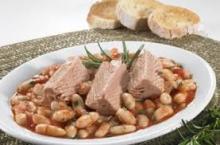 Per 4 persone: 600 gr. di filetti di sgombro, 400 gr. di fagioli cannellini in scatola super sciacquati e colati, 1 rametto di rosmarino, 1 foglia di alloro, olio extravergine, pepe, sale q.b.