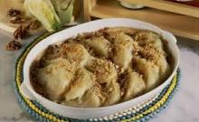 Per 4 persone: 4 finocchi puliti, lavati e lessati interi in acqua bollente per 20 minuti, 40 gr. di gherigli di noci, succo di mezza arancia spremuto, succo di mezzo limone spremuto, 80 gr. di zucchero, 3 cucchiai di burro, 4 cucchiai di olio extravergine, pepe e sale q.b.