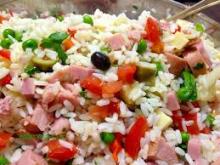Per 8 persone: 600 gr. di riso, 150 gr. di olive verdi farcite e tagliate a meta’, 120 gr. di olive nere snocciolate e affettate a rondelline, 150 gr. di funghetti sottolio colati e dimezzati, 4 cucchiai di sottaceti tritati, 200 gr. di carciofini sottolio a spicchietti, 350 gr. di tonno, 1 barattolo di condi-riso sciacquato e colato del suo liquido, 25 cucchiai di olio extravergine, poco pepe, succo di limone e sale q.b.