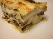 Per 6 persone: 500 gr. di pasta all’uovo preparata seguendo la ricetta “pasta all’uovo” oppure acquistare 500 gr. di lasagne all'uovo fresche, 3 buste di funghi misti surgelati, 1 spicchio di aglio, 18 cucchiai di olio extravergine, 500 gr. di besciamella pronta corretta con 2 cucchiai abbondanti di burro, poco latte e un pizzico di sale, oppure preparata in casa secondo la ricetta “besciamella”, 100 gr. di parmigiano grattugiato, vino bianco, un pizzico di timo, maggiorana e erba cipollina ma giusto il profumo, pepe e sale q.b.