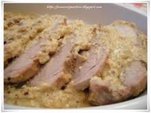 Per 6 persone: 1 kg. e 200 gr. di lonza di maiale, 180 gr. di gherigli di noci tritati, 1 cucchiaino abbondante di farina, un mazzetto di prezzemolo, una costina di sedano, una carotina, 1/2 cipolla, 60 gr. di burro, 12 cucchiai di olio extravergine, qualche cucchiaio di panna da cucina, un bicchiere di vino bianco, pepe e sale q.b.