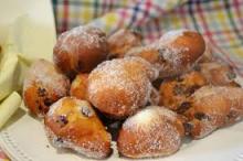 Per 25 palline: 350 gr. di farina, 100 gr. di fecola, 100 gr di zucchero, 2 uova, una bustina di lievito di birra in polvere, 150 ml. di latte, 150 gr. di uvetta ammollata in acqua bollente, strizzata e passata nella farina, zucchero q. b. per infarinarle.