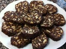 Per 4 persone: 150 gr. di burro morbidissimo a temperatura ambiente, una scatola di cacao amaro in polvere, zucchero q.b. secondo il gusto, poco rum fantasia per dolci, 3 tuorli d’uovo, 300 gr. di biscotti secchi tritati grossolanamente, un pizzico di sale.