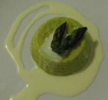 Per 6 persone: 75 gr. di panna da cucina, 150 gr. di pecorino grattugiato, 6 tuorli d’uovo, 50 gr. di scagliette di pecorino, 2 mazzetti di asparagi già perfettamente puliti o 2 scatole di punte di asparagi surgelati, 1 scalogno affettato sottile, 8 cucchiai di olio extravergine, un pizzico di timo, qualche fogliolina di basilico, pepe, sale q.b., 6 stampini monoporzione.