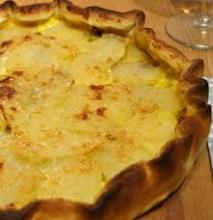 Per 8 persone: un disco di pasta brisé pronta o preparata in casa (vedi ricetta), 800 gr. di patate, 400 gr. di porri puliti e affettati a rondelle, 40 gr. di burro, 300 gr. di panna da cucina, 30 gr. di porcini secchi ammorbiditi in acqua bollente per 1/2 ora, 60 gr. di parmigiano grattugiato, 2 tuorli d’uovo, una grattugiata di noce moscata, pepe e sale q.b.
