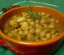 Per 4 persone: 650 gr. di ceci in scatola colati e super sciacquati, 600 gr. di spinaci surgelati, 100 gr. di passata di pomodoro, 8 cucchiai di olio extravergine, 2 spicchi e mezzo di aglio, timo, maggiorana, 1 dado da brodo vegetale, pepe e sale q.b.
