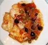 BACCALA’ ALLA NAPOLETANA Per 4 persone: 800 gr. di baccalà “a mollo”, 120 gr. di olive di Grecia snocciolate e tagliate a rondelle, 2 cucchiai di capperi sottaceto appena sciacquati e strizzati, 1 spicchio e 1/2 d' aglio tagliato a metà, un barattolo e 1/2 di polpa pronta di pomodoro, 8 cucchiai di olio extravergine, 1/2 bicchiere di vino bianco, sale q.b.