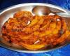 FRITTI DI ZUCCA CON SALSA DIABOLICA E SALSA ALTERNATIVA Per 4 persone: 1kg. di zucca tagliata a bastoncini spessi 1 cm., 8 pomodorini, 2 fettine di cipolla, 1 lit di olio di semi di arachidi, un pizzico di paprika, di pepe macinato e di noce moscata, peperoncino e sale q.b.