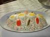 INSALATA DI RISO Per 8 persone: 600 gr. di riso, 150 gr. di olive verdi farcite e tagliate a meta’, 120 gr. di olive nere snocciolate e affettate a rondelline, 150 gr. di funghetti sottolio colati e dimezzati, 4 cucchiai di sottaceti tritati, 200 gr. di carciofini sottolio a spicchietti, 350 gr. di tonno, 1 barattolo di condi-riso sciacquato e colato del suo liquido, 25 cucchiai di olio extravergine, poco pepe,...