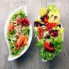 INDIVIA BELGA CON TARTARE DI PESCE Per 6 persone: 2 cespi di indivia belga, 350 gr. di polpa pulita di pescatrice o branzino, 350 gr. di salmone fresco, 2 limoni, cipolla, zenzero, erba cipollina, olio extravergine di oliva, pepe in grani, sale q.b., 2 cucchiai colmi di rucola lavata asciugata e tritata finemente.