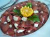 INVOLTINI SALTIMBOCCA Per 6 persone: 1 kg. di fettine di vitella tagliate sottili della stessa misura e appena intaccate ai bordi, 80 gr. di pancetta arrotolata a fettine, 1 ovolo di fior di latte, 60 gr. di burro, 6 cucchiai di marsala, 2 cucchiai di olio, una spolverata di farina, pepe e sale q.b.