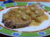 LONZA DI MAIALE ALLA TEDESCA Per 4 persone: 800 gr. di fettine di lonza di maiale, 5 mele tenere, 60 gr. di burro, 1 cipollina affettata, vino bianco, poco brodo di dado di carne, profumo di chiodi di garofano, salsa worcester, sale e pepe q.b.