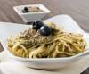 PASTA AL PESTO DI OLIVE Per 6 persone: 500 gr. di orecchiette o altro tipo di pasta corta o spaghetti, 150 gr. di olive verdi snocciolate, 40 gr. di olive nere snocciolate, 120 gr. di scamorzina bianca, peperoncino piccante, abbondante basilico, 6-7 cucchiai di olio extra vergine, pepe e sale q.b.