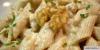 PENNE ALLE NOCI Per 4 persone: 400 gr. di penne rigate, 100 gr. di gherigli di noce, 1 cucchiaio di pinoli, 50 gr. di panna da cucina, 4 cucchiai di parmigiano grattugiato, 1/2 spicchio d'aglio, 4 cucchiai di olio extravergine, pepe e sale q.b.