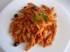 PENNE ALL’ARRABBIATA Per 4 persone: 450 gr. di penne lisce, 3 spicchi d’aglio a pezzetti, 450 gr. di pomodori freschi, lavati, aperti e strizzati per eliminare i semi e l’acqua di coltivazione e poi passati oppure 400 gr. di polpa di pomodoro pronta, peperoncino abbondante, 8 cucchiai di olio extravergine, un cucchiaio raso di prezzemolo tritato, sale q.b.