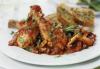 POLLO AGLI AROMI Per 4 persone: 1 pollo di circa 1 kg. e 200 spezzato piccolo, 100 gr. di olive nere snocciolate, vino bianco secco, capperi sotto sale, pinoli, 2 cucchiai di burro, 2 cucchiai di olio extravergine, 1 spicchio d' aglio, salvia, timo, alloro, rosmarino e basilico in piccole dosi, pepe e sale q.b.