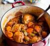 POLLO SPEZZATO Per 4 persone: 1 kg. di pollo pulito e tagliato a pezzi non troppo grandi, 10 cucchiai di olio extravergine, 30 gr. di burro, 5-6 fettine di cipolla, vino bianco, polpa di pomodoro, pepe e sale q.b.