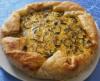 SFOGLIATA VEGETARIANA Per 8 persone: 400 gr. di patate tagliate a dadini e lessate per 6 minuti, 500 gr. di pasta sfoglia surgelata o fresca, 200 gr. di carote, 100 gr. di groviera, 1/2 porro, 1/2 cipolla, 4-5 cucchiai di olio extravergine, pepe, sale q.b.