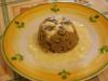SFORMATINI DI CAPRINO CON OLIVE E MENTA Per 6 persone: 250 gr. di ricotta, 1 uovo, 2 tuorli, 180 gr. di caprini o equivalente, 60 gr. di olive verdi snocciolate e 20 gr. di olive nere snocciolate, erba cipollina e menta anche secche in barattolino ma ben dosate, un filo di miele di castagno, burro e pangrattato per foderare gli stampini, 5 cucchiai di olio extravergine, pepe, sale q.b.