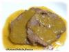 VITELLO ALL’ACCIUGA Per 6 persone: 1 kg. di noce di vitella, 100 gr. di pancetta arrotolata (una fetta unica), 50 gr. di filetti d’acciuga ben sciacquati, 60 gr. di burro, 6 cucchiai di olio extravergine, 2 cucchiai di senape, 1 grossa cipolla, 2 uova, 200 gr. di panna liquida, vino bianco, brodo di dado di carne, sale q.b.