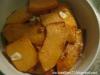 ZUCCA FRITTA E MARINATA ALLA SICILIANA Per 4 persone: 10 fette di uguale grandezza ma non troppo erte ricavate da 1 kg. di zucca pulita e lavata, olio extravergine, 1 cucchiaio di capperetti sottaceto appena sciacquati e strizzati, 1 cucchiaio di uvetta già’ ammorbidito a bagno in acqua bollente, 8 cucchiai di aceto, 1 spicchio di aglio, 2 cucchiai di zucchero, pepe e sale q.b.